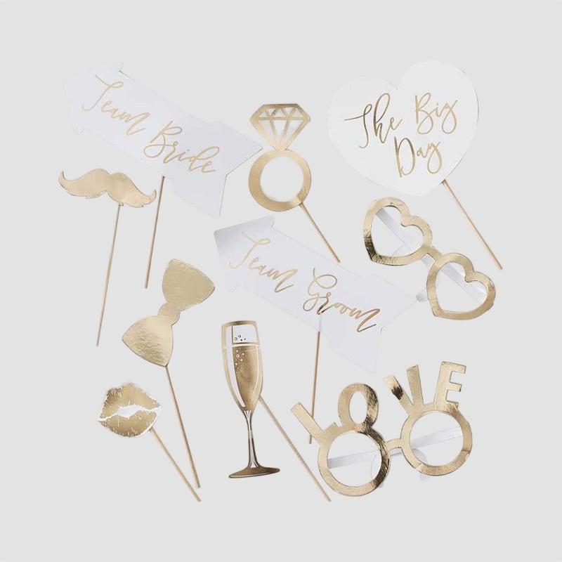Vær sikker på det bliver nogle sjove bryllupsbilleder – med disse photo booth sticks med bryllups motiver! Perfekte til at sætte gang i festen og garantere sjove billeder, kommer i en pakke med 10 stk. forskellige motiver.