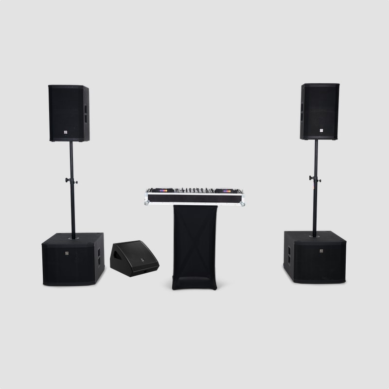 Lej DJ Pakke 2 – CDJ 3000, alt hvad du behøver af DJ udstyr til at spille en fest med 200 deltagere. DJ pakken indeholder Pioneer CDJ 3000 DJ Pult med DJM 900 NXS2, 2 højtalere, 2 mellemstænger, 2 15″ subs og 1 DJ monitor. Alle højtalere har indbygget forstærker. Perfekt pakke løsning til en stor fest.