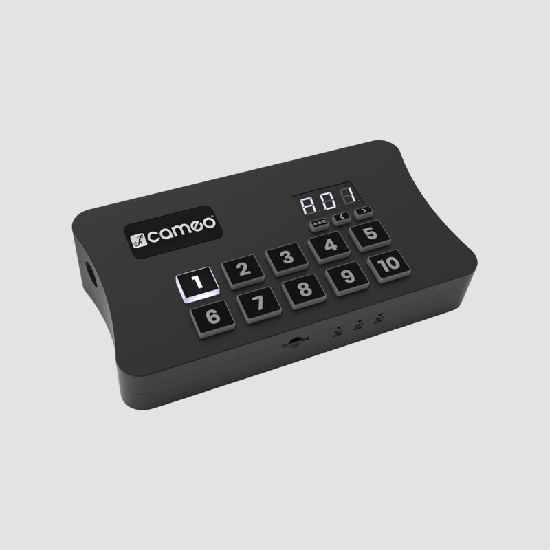 Cameo DMX-controlleren tilbyder op til 2048 DMX-kanaler – herunder 1024 kanaler i live-mode og 512 kanaler i stand-alone-mode. Enheden er udstyret med et brugervenligt kontrolpanel, der inkluderer 10 knapper og navigationspile, som gør det nemt at administrere op til 99 scener fordelt på 5 zoner. DVC Cue er kompatibel med Cameos intuitive DMX-software, udviklet af Daslight, og kan anvendes både på PC og Mac. Controlleren kan anvendes i live-mode eller som stand-alone-enhed med forprogrammerede scener lagret på et microSD-kort.