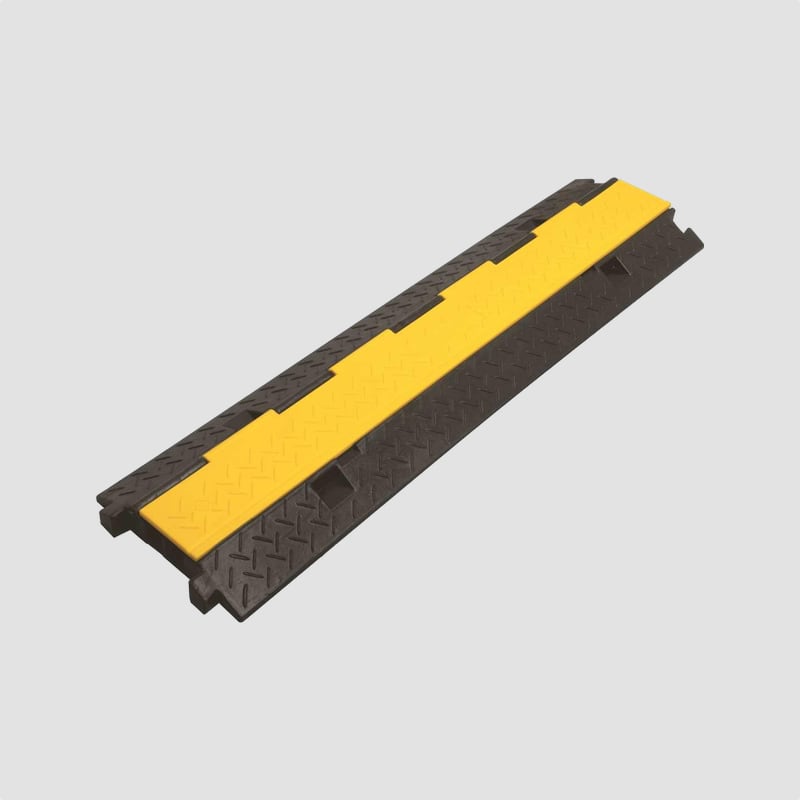 Professionel kabelbro til beskyttelse af kabler ved midlertidige installationer. Kabelbroen kan udbygges til ønsket længde. Bund af gummi og låg af PE/PVC med beslag af forstærket fiberglas. Kabelgennemgang i 2 sektioner á 30×25 mm.
