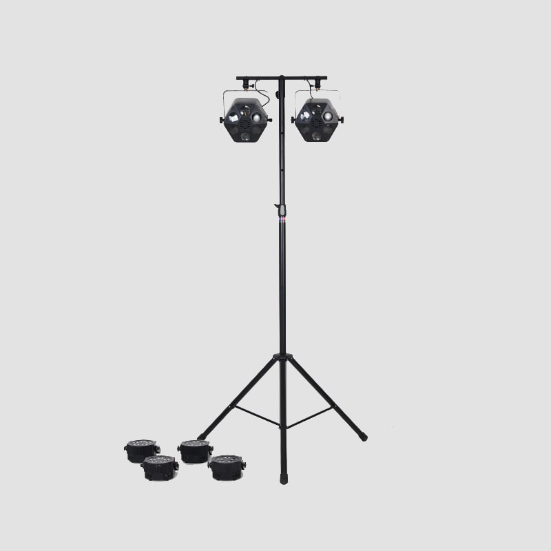 Lysshow Pakke 1 – Skabt til dansegulvet. Lyspakken er velegnet til mindre fester, for at sætte ekstra kulør på festen og skabe energi til dansegulvet. LED lyseffekterne bevæger sig automatisk i takt til musikken og pryder ethvert dansegulv med et utal af flotte farver. Suppler lyspakken med en røgmaskine og oplev de mere end 150 roterende farvestråler som bevæger sig i luften. Lyspakken består af 2 stk. Moonflower lyseffekter på lysstativ, 4 stk. uplights samt alle de nødvendige kabler. Lyspakken kræver ikke andet end 230V strøm fra en almindelig stikkontakt.