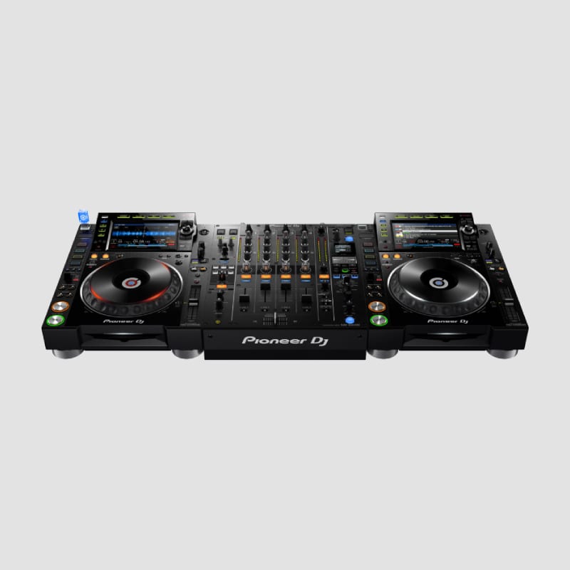 Pioneer NXS2 DJ Pult. Pulten indeholder 2 x Pioneer CDJ 2000 NXS2 afspillere og 1 x Pioneer DJM 900 NXS2 DJ-mixer. DJ pulten kan afspille USB, SD kort og CD. Der medfølger et minijack kabel (AUX) for nem tilslutning til smartphone og andre AUX kompatible enheder. Mixeren har indbygget lydkort og kan nemt tilsluttes MAC/PC via USB kabler for, at afvikle DJ-software såsom Serato DJ og Traktor DJ. Pulten leveres i flightcase og er tilsluttet netværksboks.