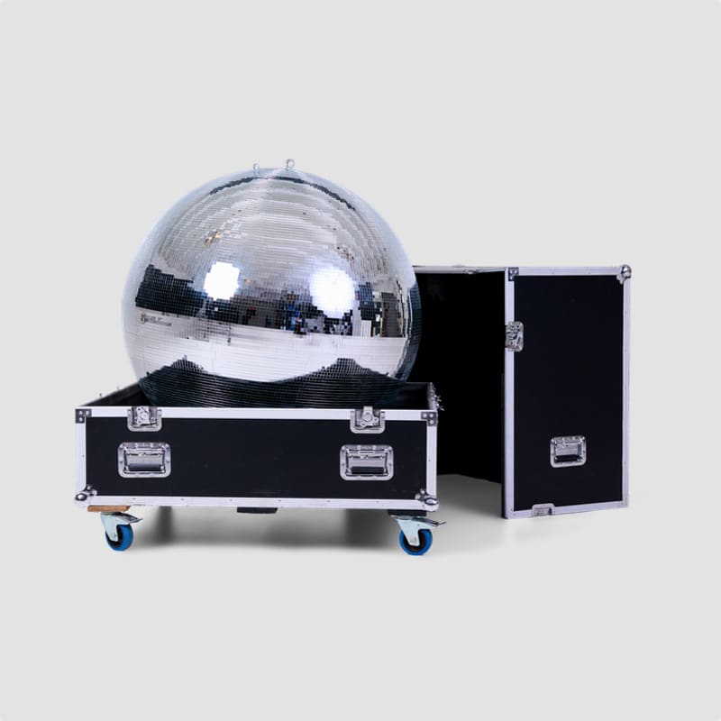 Gigantisk spejlkugle på 100 cm. med 10×10 spejle. Spejlkuglen er blandt verdens ældste typer af lyseffekter og menes at have rødder helt tilbage til 1920’erne. Spejlkuglen er også kendt som ”diskokugle”, som stammer fra diskomusikkens storhedstid i 1980’erne. Spejlkuglen ses i dag ved flere typer af festlige lejligheder og hænger på et utal af barer, natklubber og spillesteder. Konceptet bag spejlkuglen er simpelt: Spejlkuglen monteres i motor og belyses af en velegnet spot. Dette skaber en flot og elegant effekt med flere hundredvis af lys roterende i lokalet. Oprindeligt var det den klassiske pinspot, som blev anvendt til belysning af spejlkuglen. I takt med udviklingen af LED-lys, er det blevet mere normalt at anvende LED-spots og andre lamper.