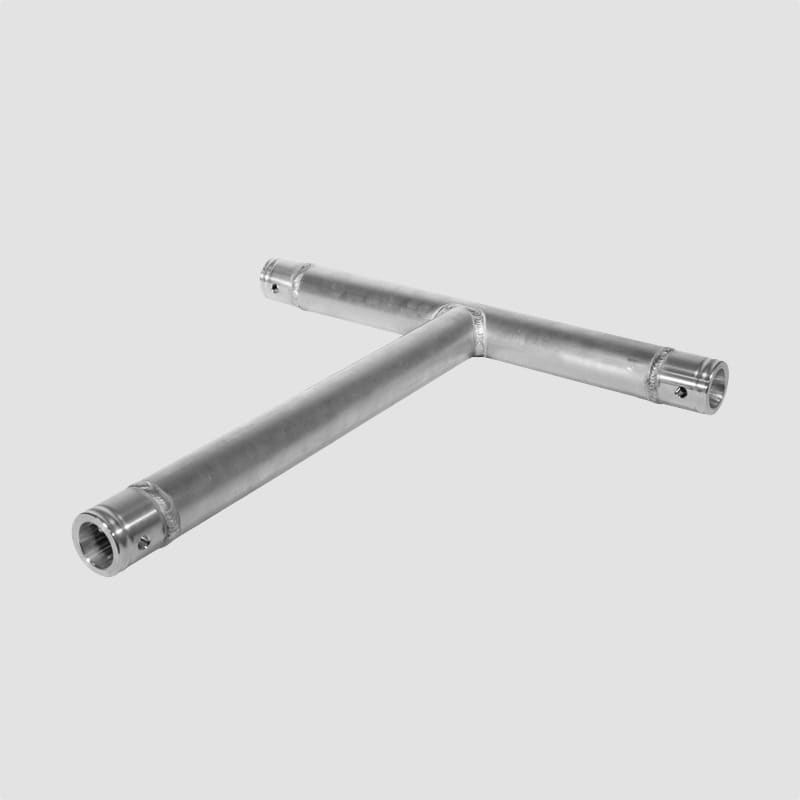 1-kant T-stykke fra Global Truss med halfcoupler clamp. Kan bruges til at have bl.a. movingheads hængende et niveau under sin truss konstruktion.